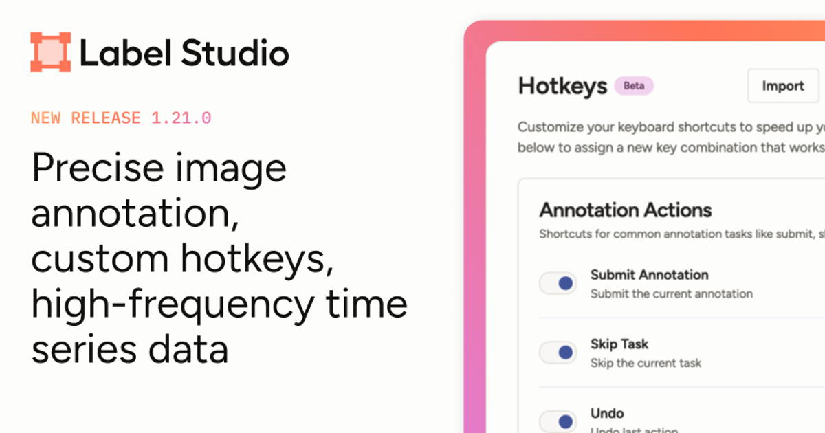 Label Studio 1.21.0 is all about putting you in control, with more precision in image and time series annotation, faster labeling shortcuts, and clearer workflows for storage and data imports. Whether you’re segmenting images at the pixel level, applying multiple attributes in a single step, or verifying files before they hit your project, this release helps you move faster while staying accurate.
